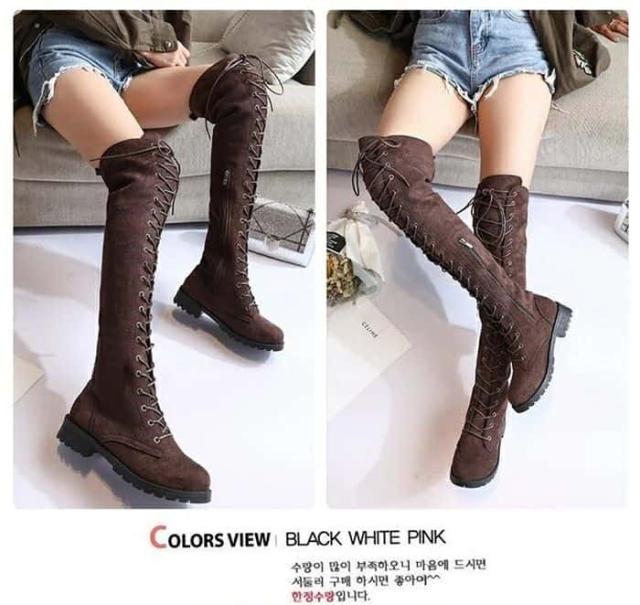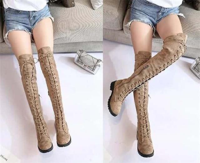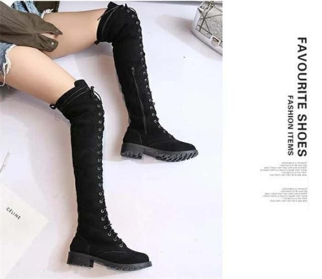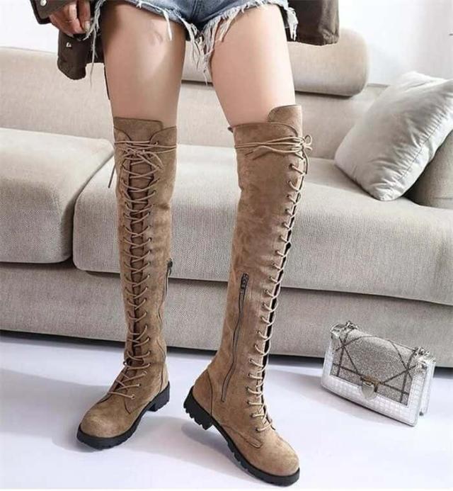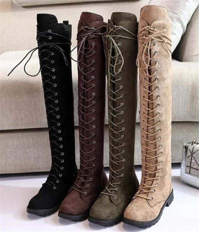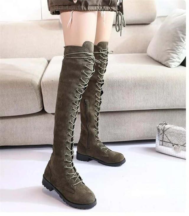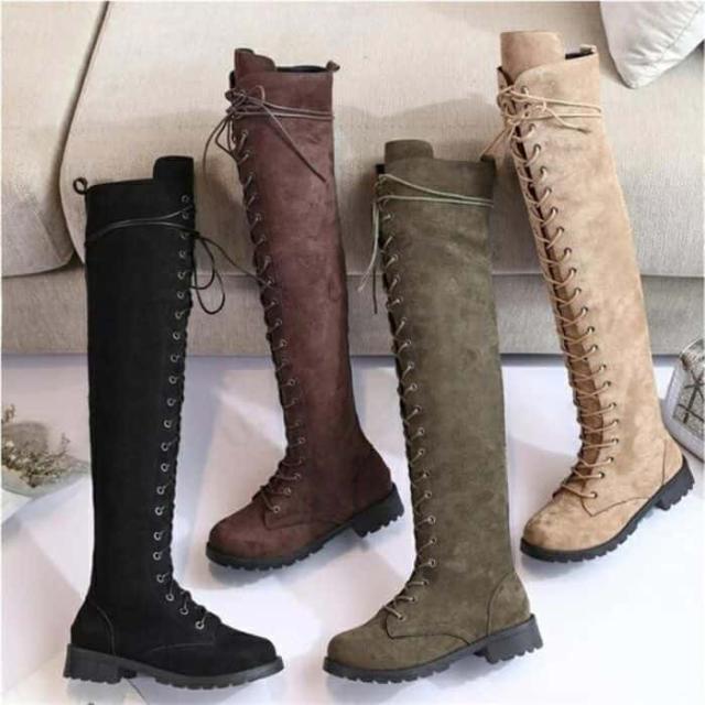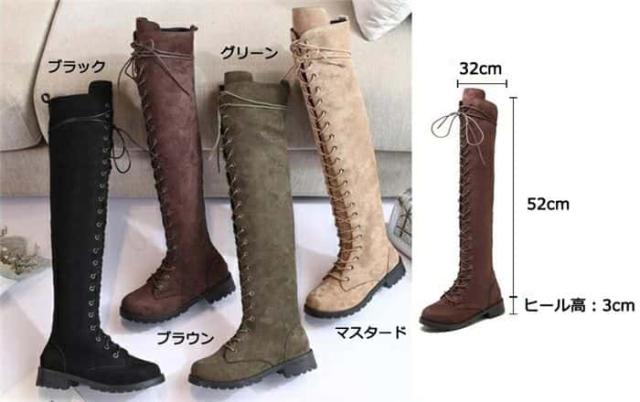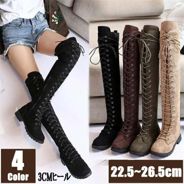 ロングブーツ レディース 美脚 ローヒール3cm ブーツ ストレッチ 長靴 防寒 歩きやすい ロング丈 膝丈 スエード ニーハイブーツ 編み上げ レースアップ