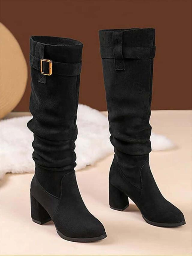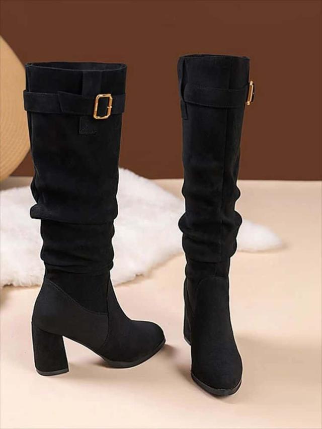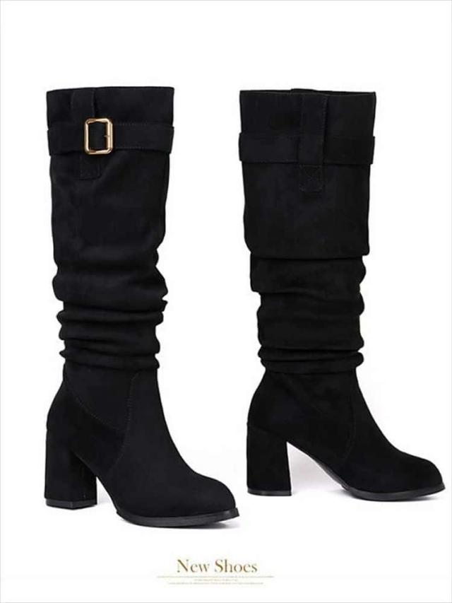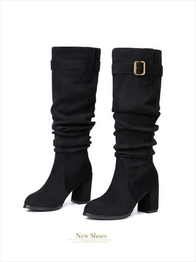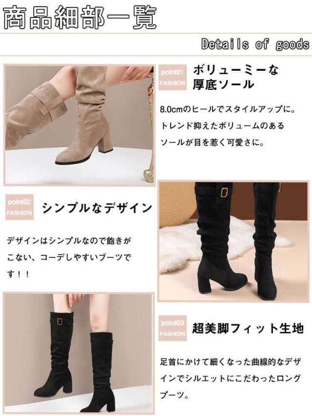 ロングブーツ レディース ブーツ 大きいサイズ ヒール6cm 8cm 美脚 細見え 裏起毛 ローヒール 疲れない 痛くない 歩きやすい 防寒 韓国 カジュアル 靴 シューズ 軽量 おしゃれ きれいめ 可愛い 楽ちん ファッション 通勤通学 春 秋 冬 黒 22 22.5 23 23.5 24 24.5 25 25.5