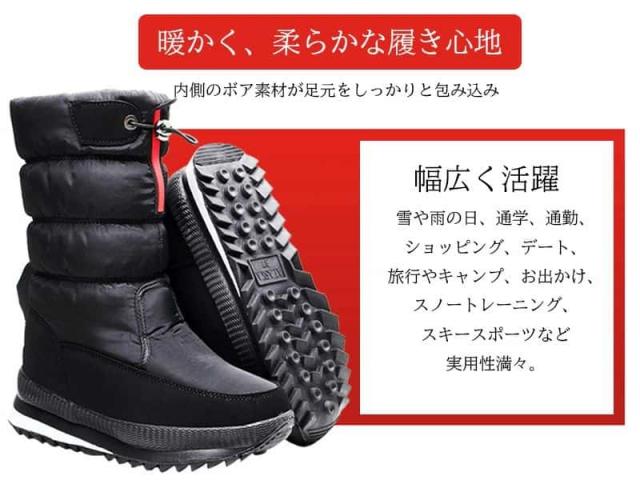 防寒保温&軽量:スノーブーツの内部は加絨素材で、厳しい寒さから足元を守るとともに、軽快な履き心地を提供します。