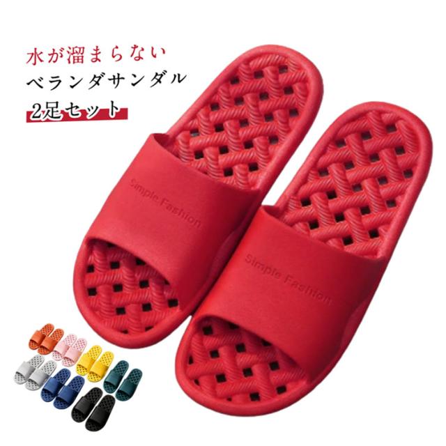 ベランダ 速乾 実用的 【2足セット】 縮まない 新生活 水が溜まらない スリッパ シンプル 穴あき 滑り止め PVC ベランダ用サンダル 水切れサンダル おしゃれ 水切れ スリッパサンダル 夏用 かわいい 浴室 シャワー サンダル 【2足セット】 柔らかく