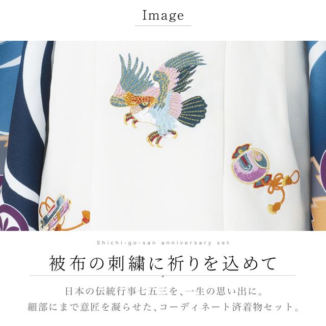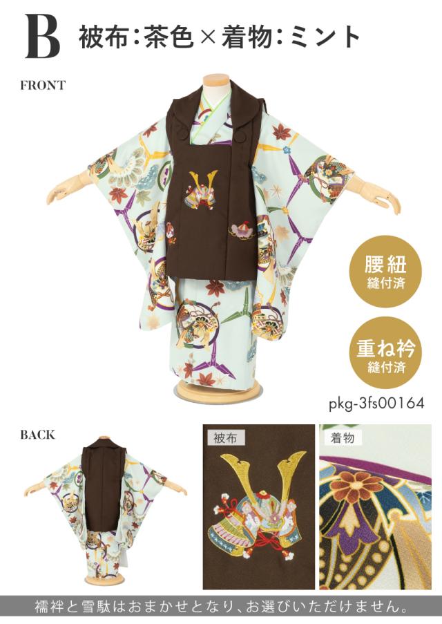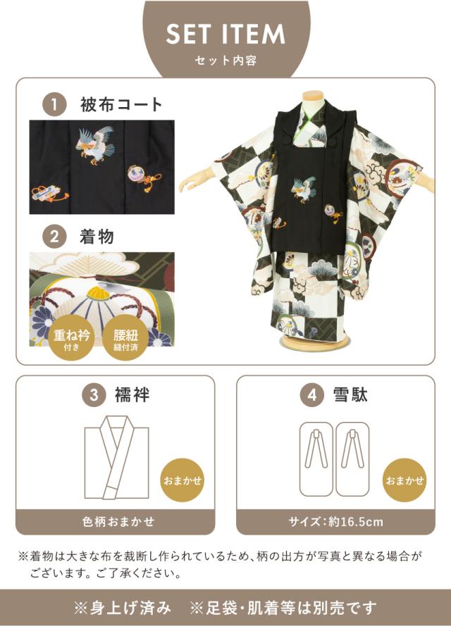 七五三 着物 3歳 男の子 着物セット 被布 襦袢 雪駄 白 茶 黒 紫 薄緑 刺繍 兜 鷹 宝尽くし 松 格子 三歳 子供着物 男児 モダン お正月 肩上げ済 腰上げ済 購入 創美苑 送料無料