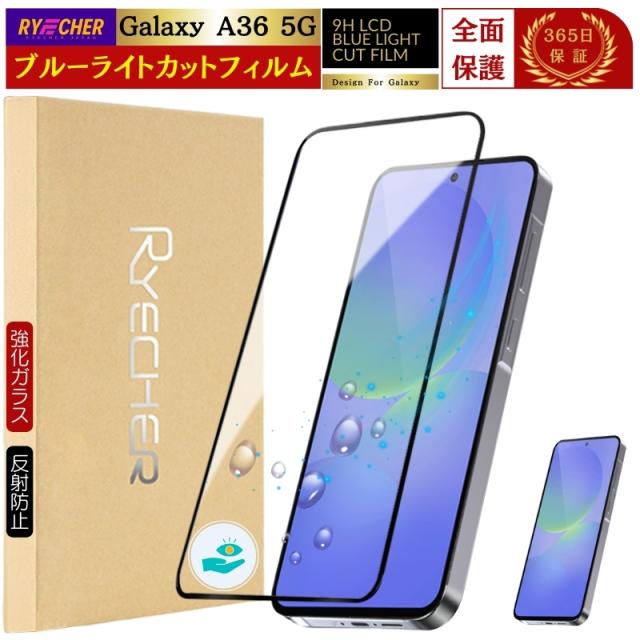 光害軽減 ギャラクシー A36 5G 保護フィルム ブルーライトカット galaxy A36 5G SC-54F ガラスフィルム 目に優しい GALAXY A36 フィルム 全面保護 galaxyA36 ブルーライト スマホフィルム 液晶フィルム RYECHER