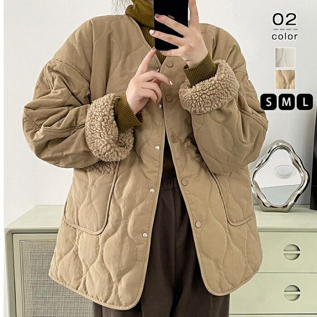 レディース トップス アウター 上着 ブルゾン コート ジャンパー ノーカラー ライトアウター 羽織り キルトジャケット キルティングジャケット 長袖 薄手 軽い 軽量 あったか 暖かい 秋 冬 防寒 フードなし ライトアウター キルティングジャケット キルティングブルゾン キルティングコート ジャンパー 長袖 羽織り 裏起毛 冬 防寒 保温 あったか 暖かい