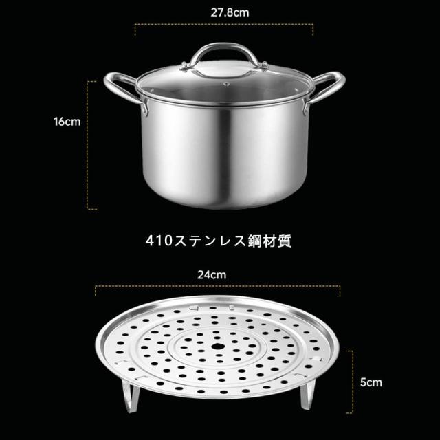 鍋セット ih 鍋 両手鍋 カレー鍋 寸胴鍋 ステンレス 鍋 キャンプ 鍋 アウトドア 鍋 大鍋 ih対応 28cm 卓上鍋 深型 大きい鍋 調理器具 オール熱源対応 ガラス鍋蓋付 スチームラック付き フッ素加工 おでん カレー茹で物 ラーメン鍋 スシチ