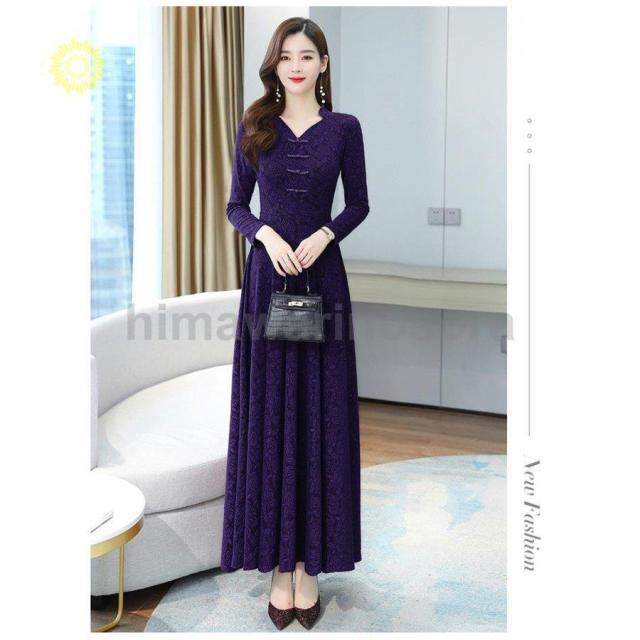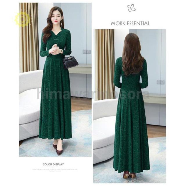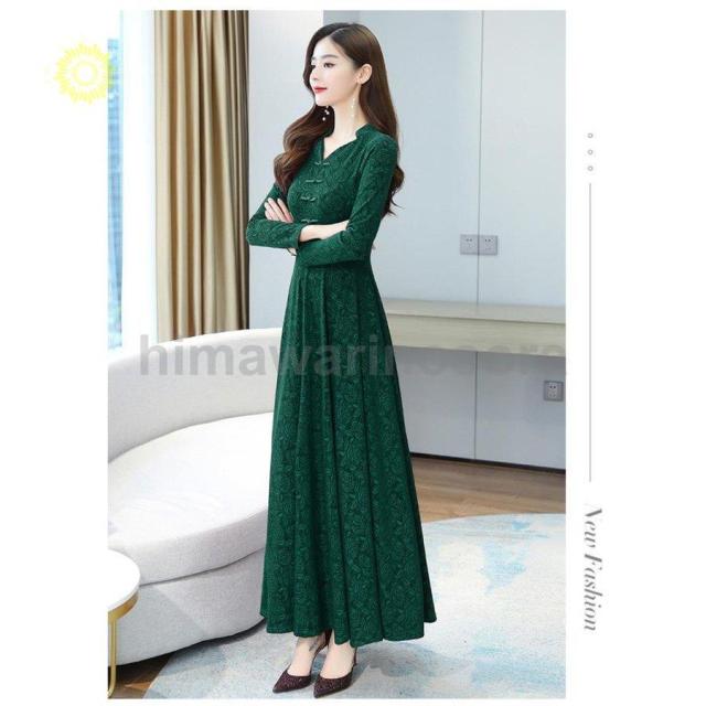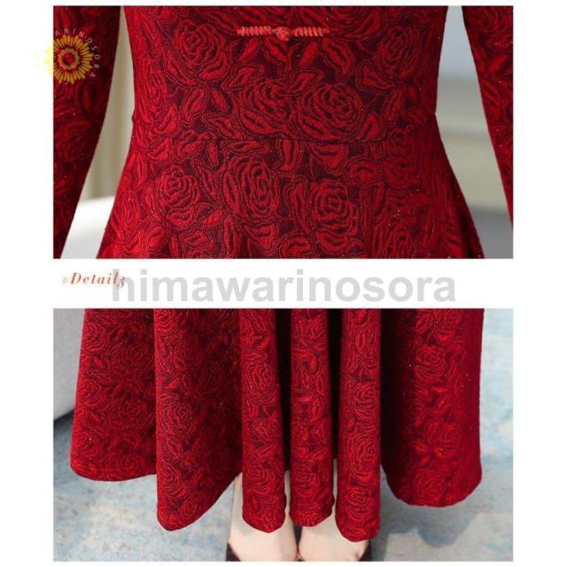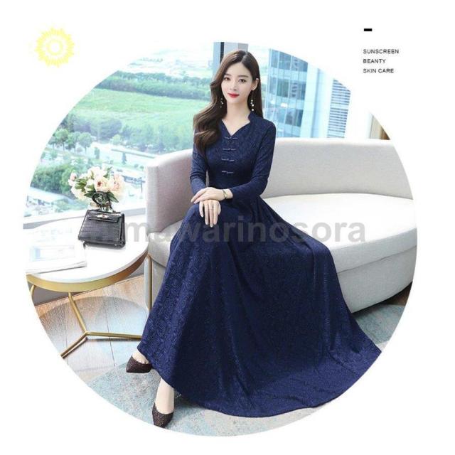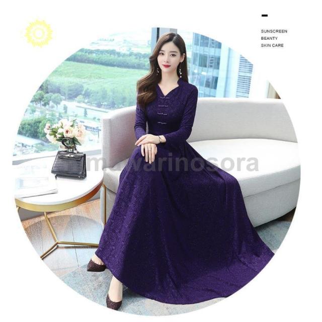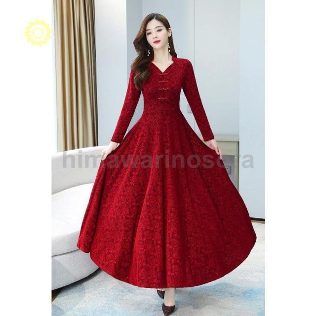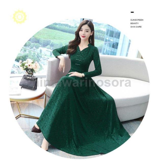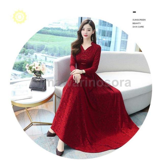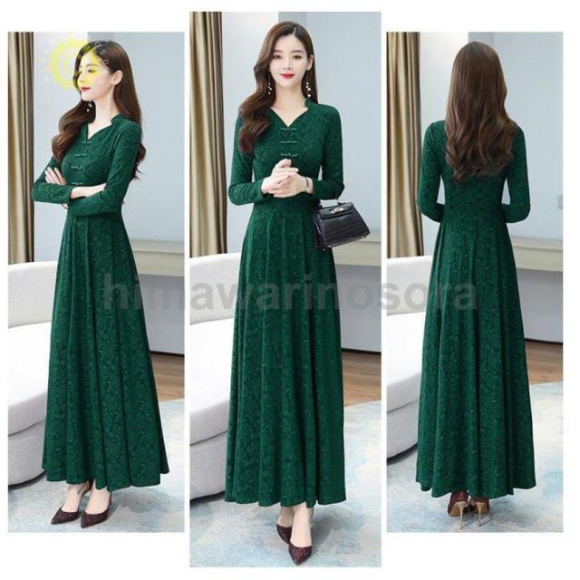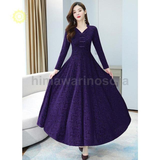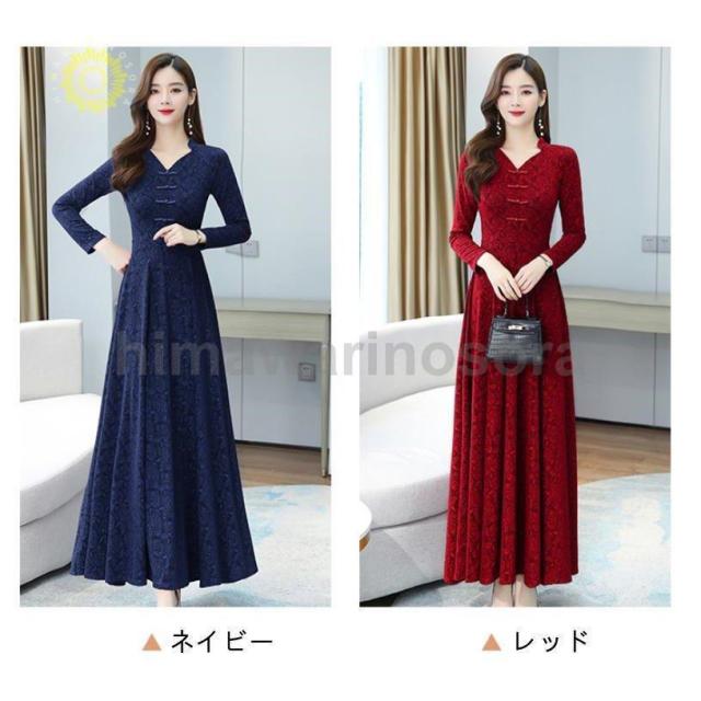パーティードレス 結婚式 40代 30代 20代 ロング丈 袖あり 長袖 韓国風 大きいサイズ フォーマルドレス レースワンピース お呼ばれ 二次会 上品 着痩せ 卒業式