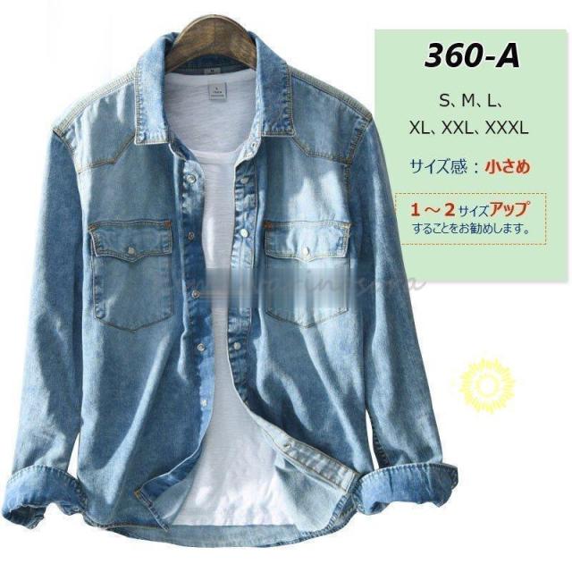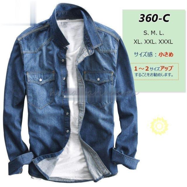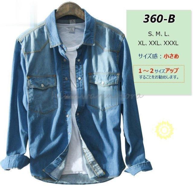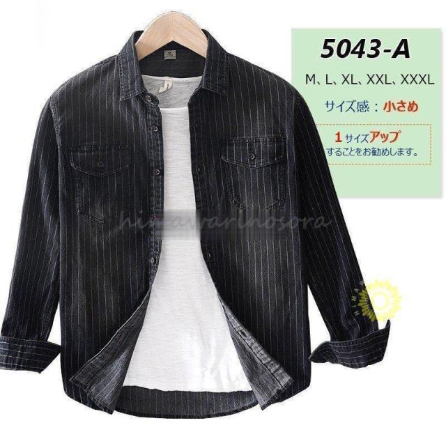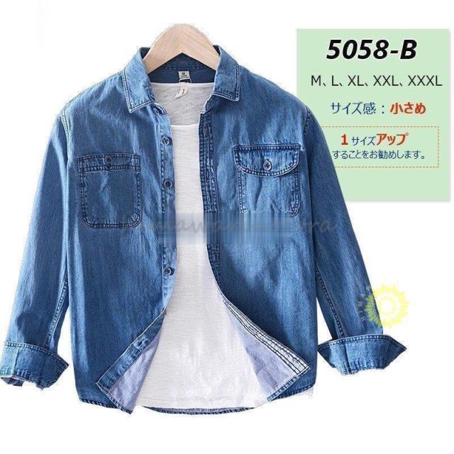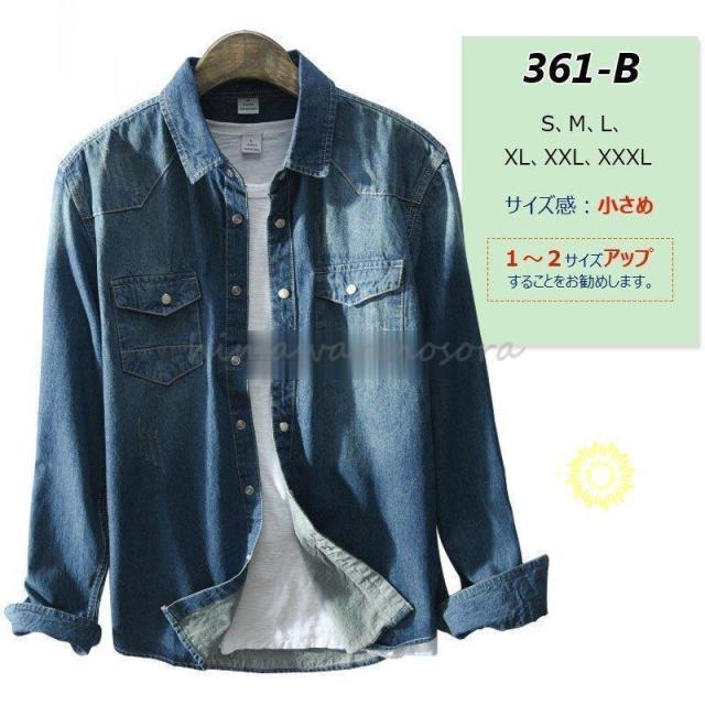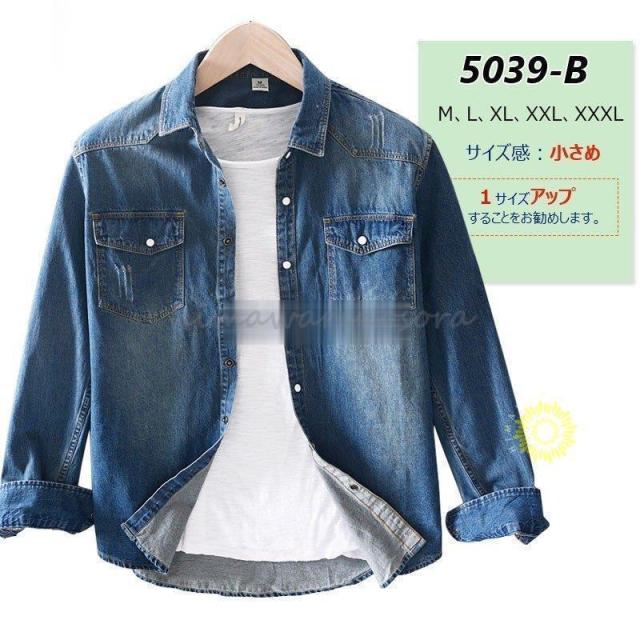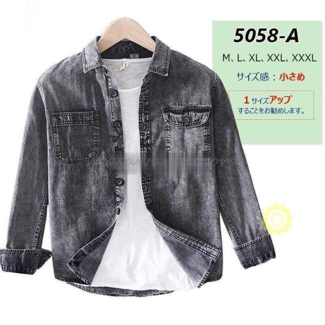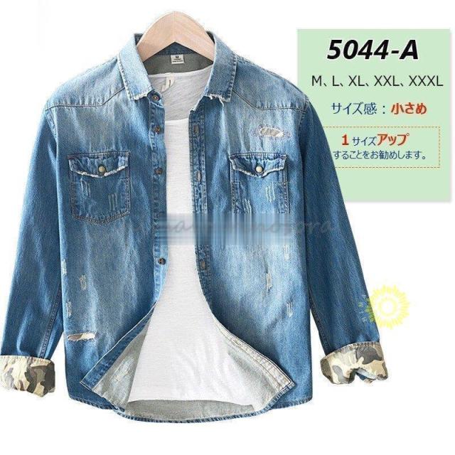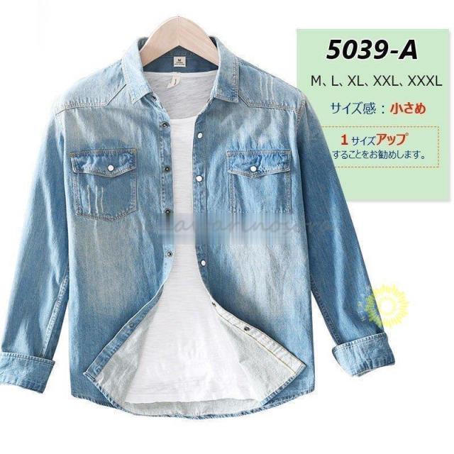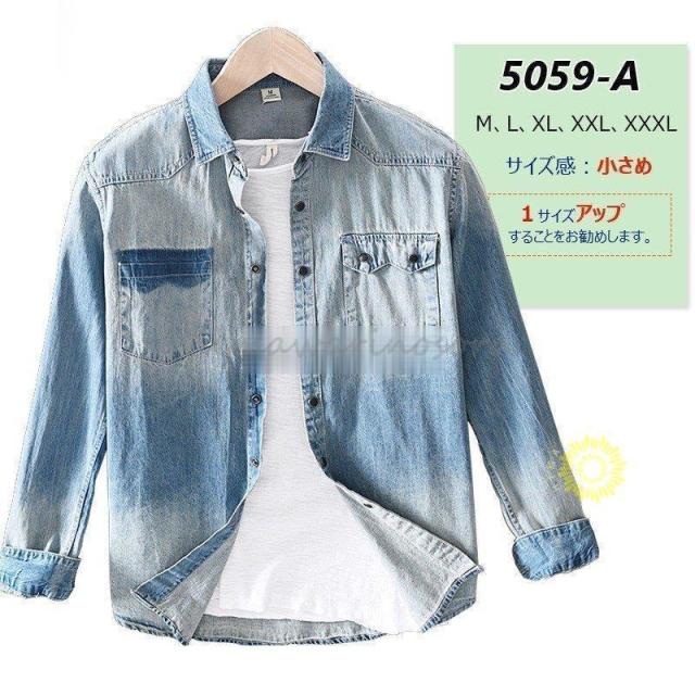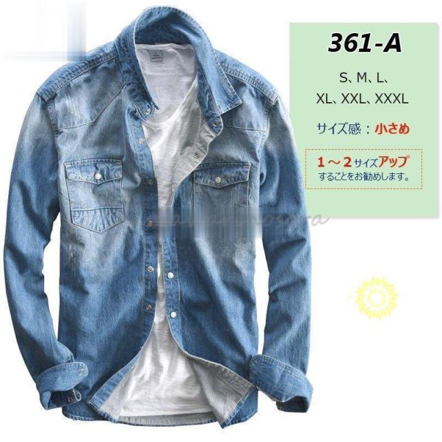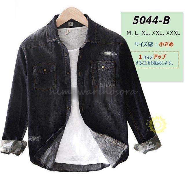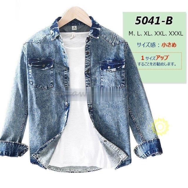 デニムシャツ メンズ 長袖 カジュアルシャツ 無地 加工 ウエスタンシャツ ダメージ スリム ダンガリーシャツ