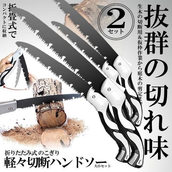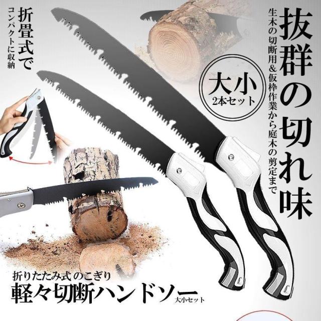 2セット 折りたたみ式 万能 のこぎり 大小セット 快速目 折込鋸 ハンドソー 粗大ごみカッター 木工切断 枝切り用 ガーデンツール 2-NONONOC