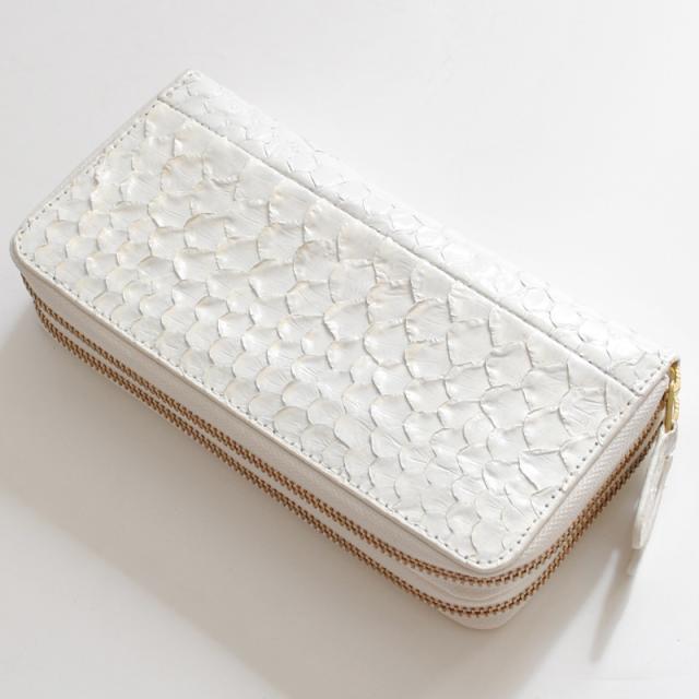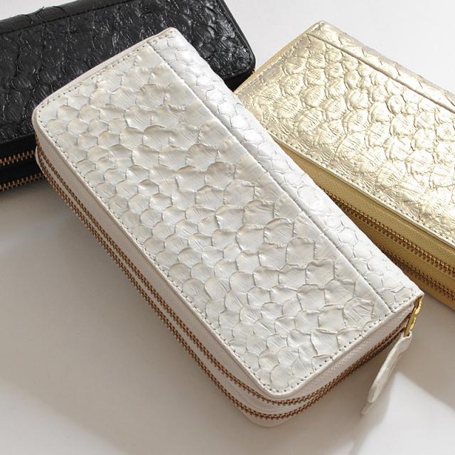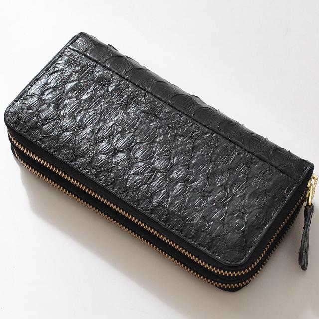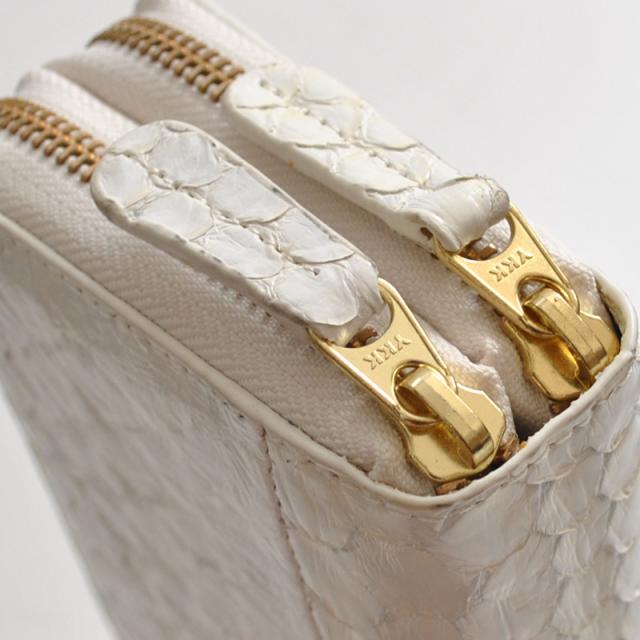 錦蛇の本皮を贅沢に使用したダブルファスナーのラウンド長財布。