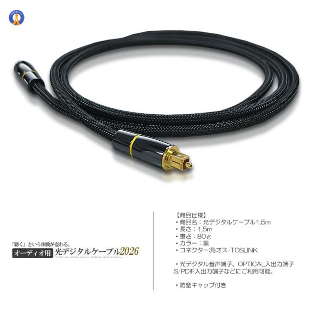 光デジタルケーブル 1.5m 高品質 光ケーブル 角型プラグ オーディオケーブル ナイロン HIKARICB
