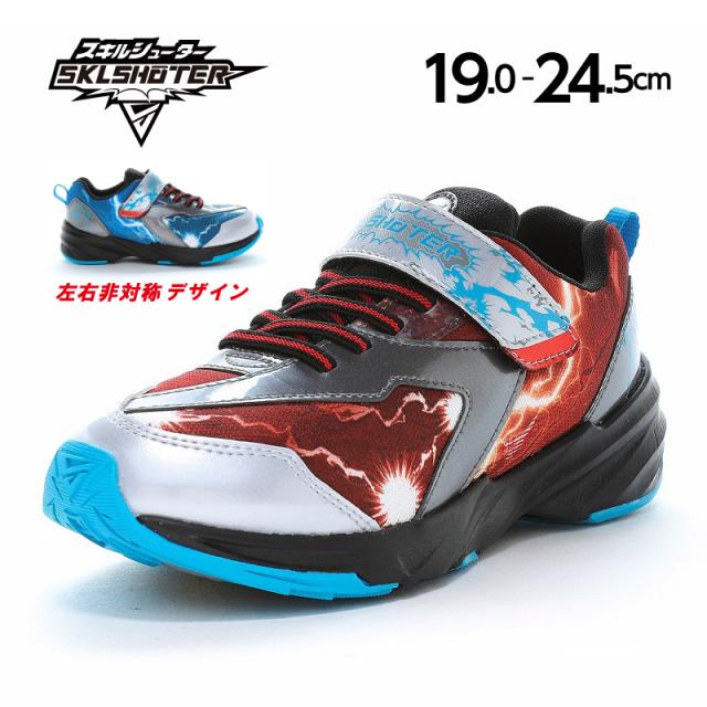 ★春夏新作 11月発売★ 送料無料 ムーンスター スキルシューター 子供靴 スニーカー SK 0082 レッド/ブルー スキルを解き放て ジンライ 迅雷 雷スキル 小学生 男の子 通学 左右非対称デザイン かっこいい 耐摩耗ラバー 抗菌防臭
