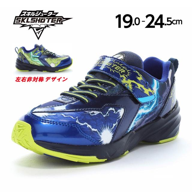 ★春夏新作 11月発売★ 送料無料 ムーンスター スキルシューター 子供靴 スニーカー SK 0082 ブルー/ライム スキルを解き放て ジンライ 迅雷 雷スキル 小学生 男の子 通学 左右非対称デザイン かっこいい 耐摩耗ラバー 抗菌防臭su