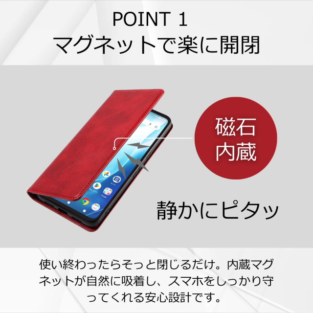 マグネット開閉で使いやすく、横置きスタンドとしても活躍します。