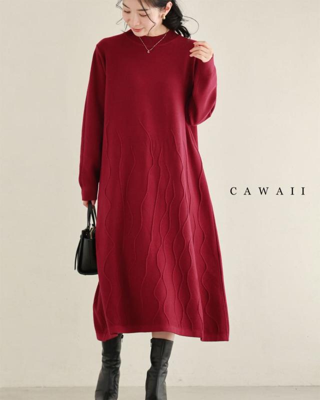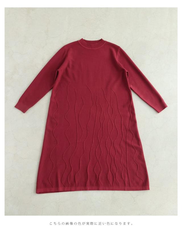 再入荷10月30日 ラインが浮かぶ街映えカラーニットミディアムワンピース cawaii w61587ps S~3L対応 女子会 大人女子 重ね着 レッド おしゃれ キレイめ 模様編み 上質感 レディース ファッション 大人 ママ ミセス 30代 40代 50代 60代