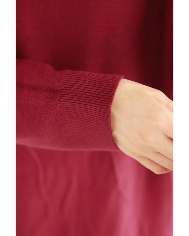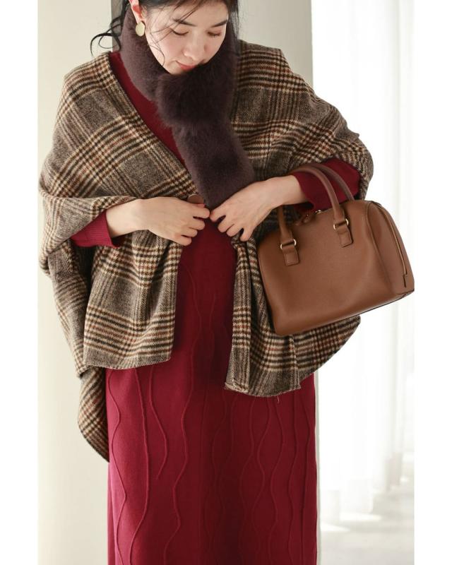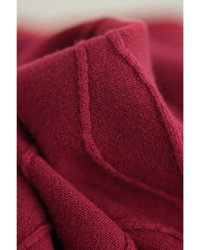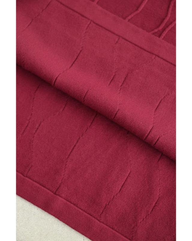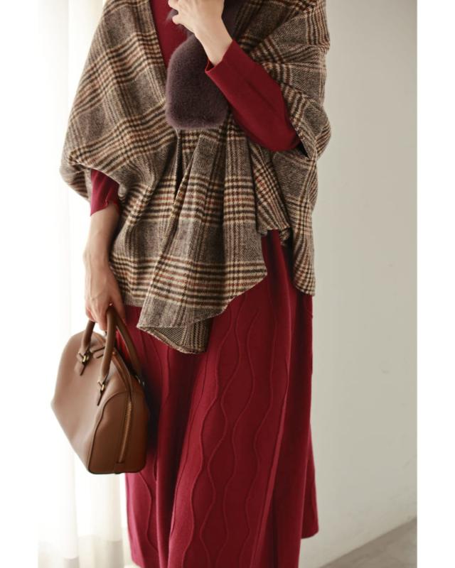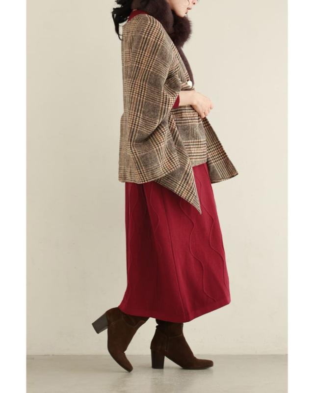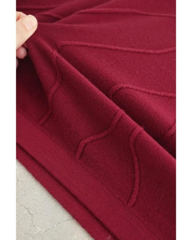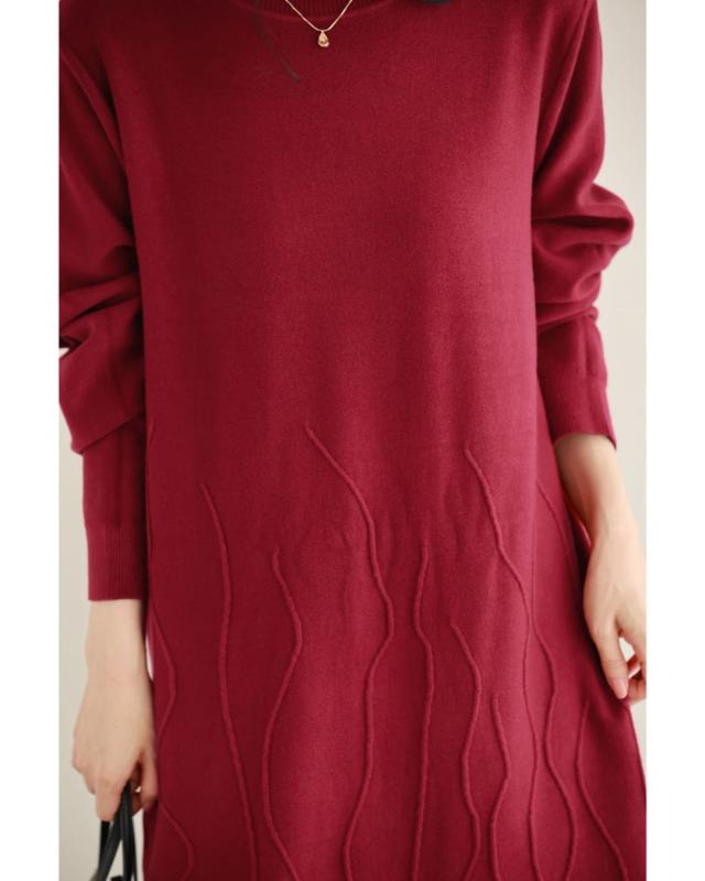 - 明るい赤ではないので、抵抗なく着れちゃいます。少し立体的な模様が動くたび上品な雰囲気を醸し出してくれるニットワンピースです。