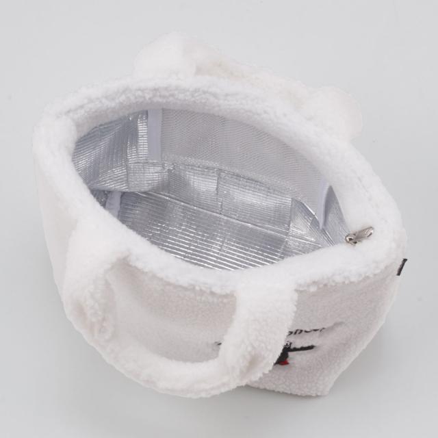 モコモコとしたボア生地が可愛いランチバッグです。保温・保冷効果があるため、季節を問わず一年中便利にお使いいただけます。