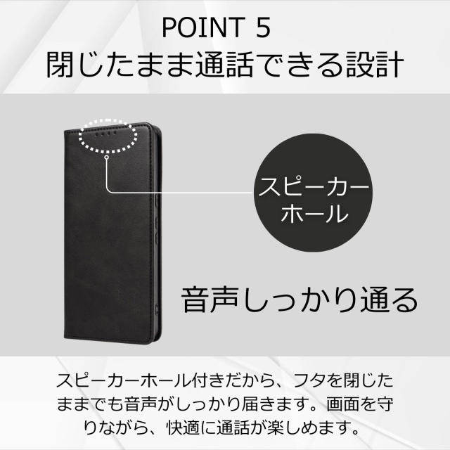 スピーカーホールのおかげでケースを開かずにそのまま通話が可能。手がふさがっているときにも役立ちます。