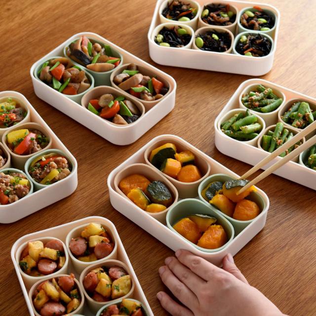おかずを小分けにして作り置きに便利なカップと容器のセットです。冷凍保存できるのでお弁当や離乳食、おかずが1品足りない時などに便利です。