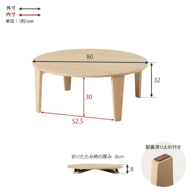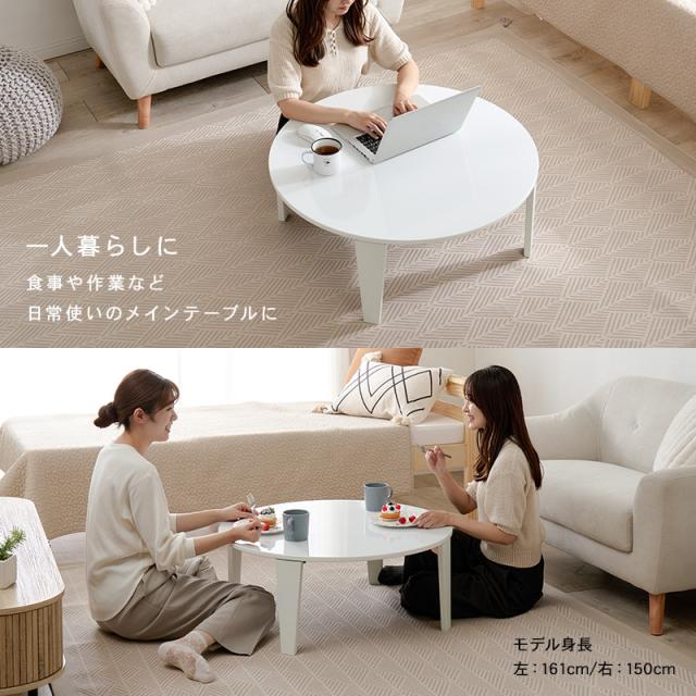 テーブル 折りたたみ 小さい 折りたたみテーブル 机 丸 円形 丸型 コンパクト ローテーブル 折れ脚テーブル センターテーブル 白 クルール 80cm コンパクト 小さめ 子ども部屋 おしゃれ 折れ脚