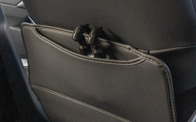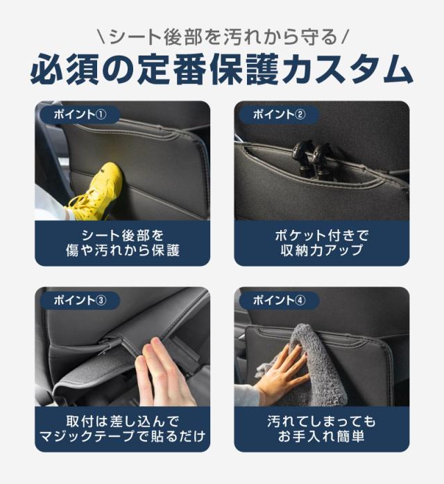 後部座席のお子様の足による汚れや傷からフロントシートをしっかり保護し、さらに収納ポケットを増設することで小物や必需品を整理整頓できます。