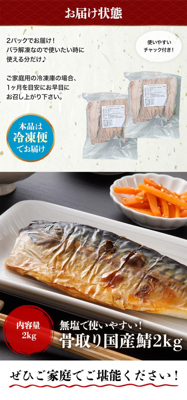 さば 骨取り 国産 無塩 2kg 骨なし サバ 鯖 フィレ 日本産 冷凍