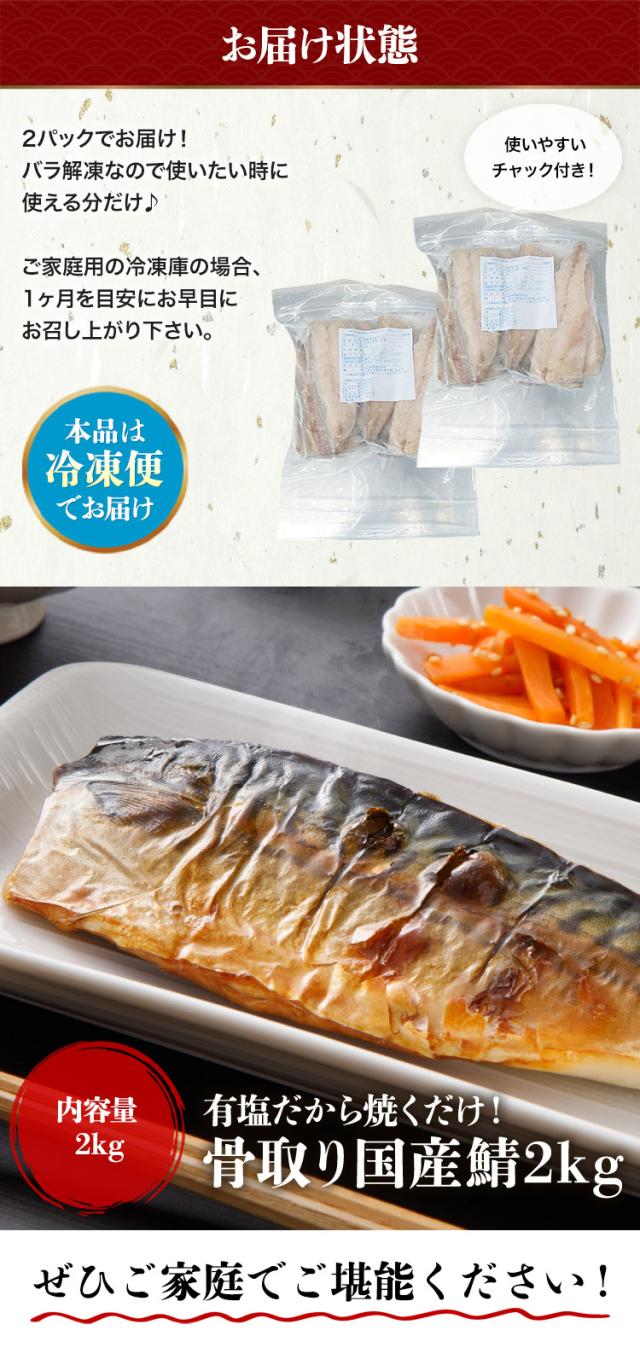 さば 骨取り 国産 有塩 2kg 骨なし サバ 鯖 フィレ 日本産 冷凍