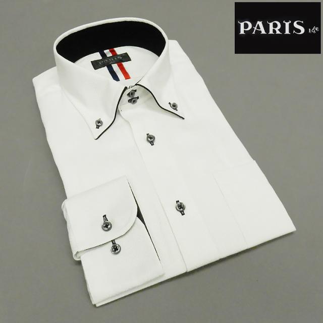 長袖ワイシャツ 白 ヘリンボーン/杉綾 ボタンダウン ドゥエボットーニ PARIS-16e 形態安定 M-3L HKP-Z11B