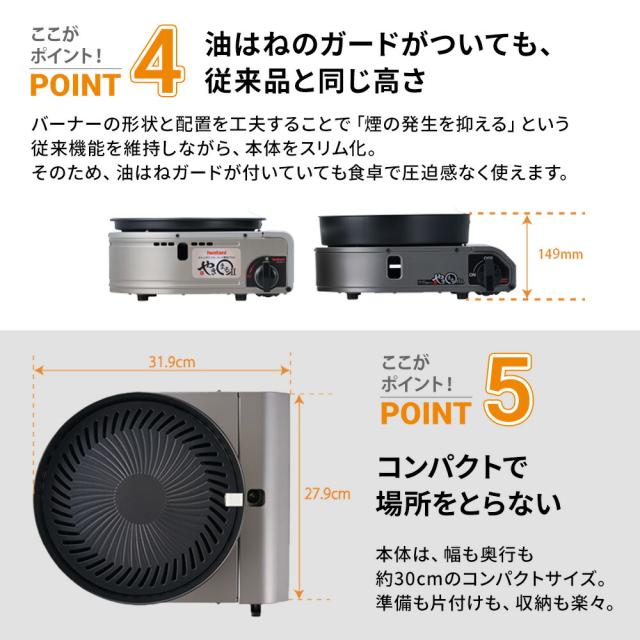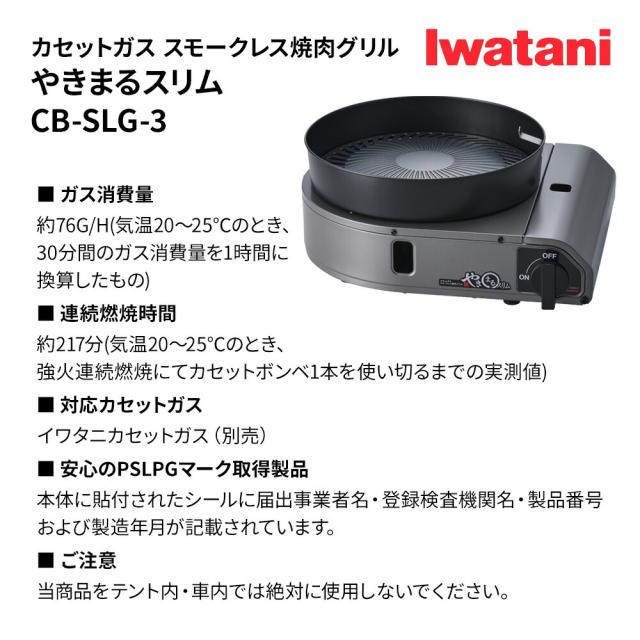 カセットコンロ Iwatani スモークレス焼肉グリル やきまるスリム チャコールメタリック CB-SLG-3 岩谷 イワタニ こんろ 簡易コンロ アウトドア キャンプ 焼肉 グリル 減煙 煙 出ない 油はね 軽減 ホットプレート カセットガス 卓上用