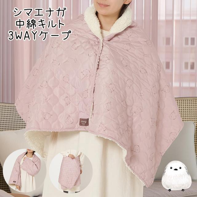 アニマル 中綿キルト3WAYケープ シマエナガ ひざ掛け 羽織 ケープ ブランケット 巻く 冷え性対策 ルームウェア 裏ボア HAPINS 防寒 あったか ふわふわ かわいい