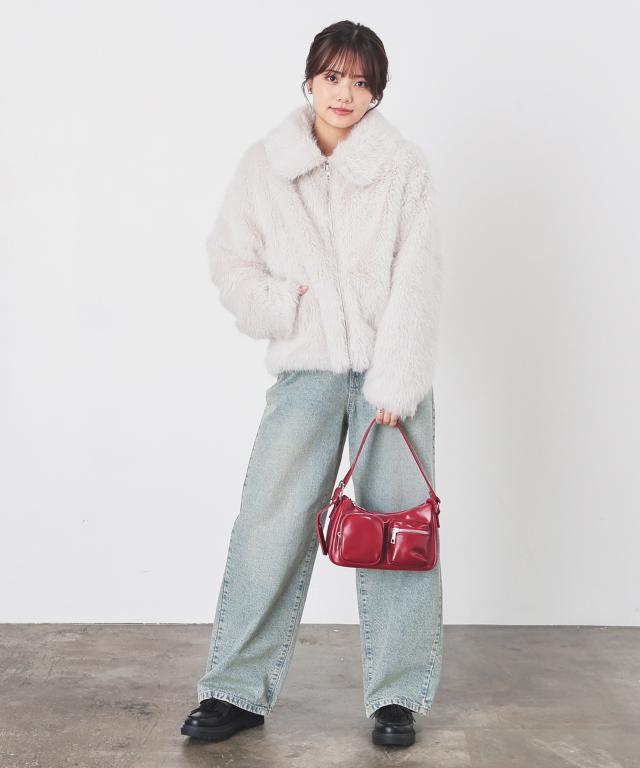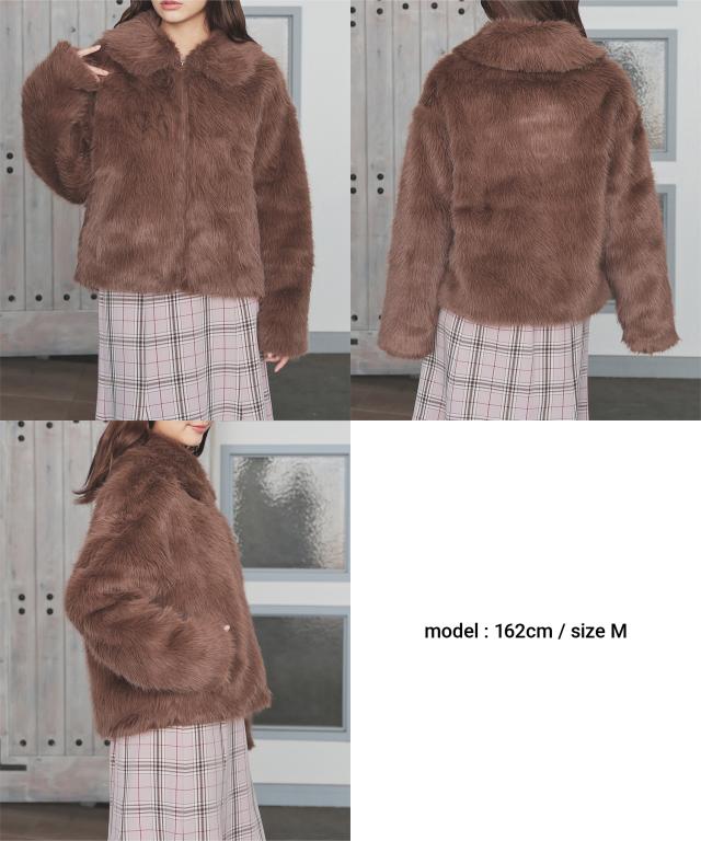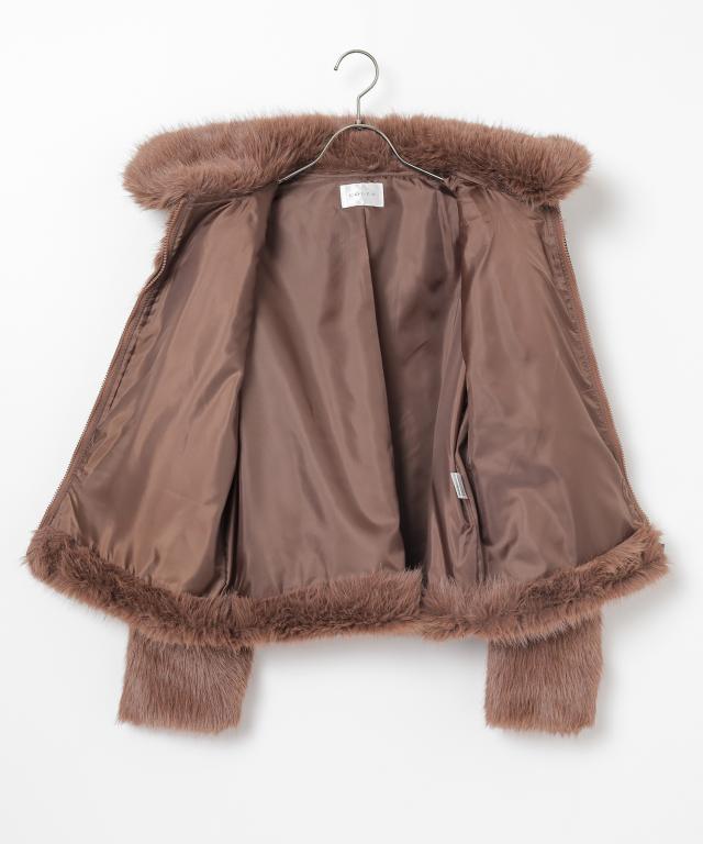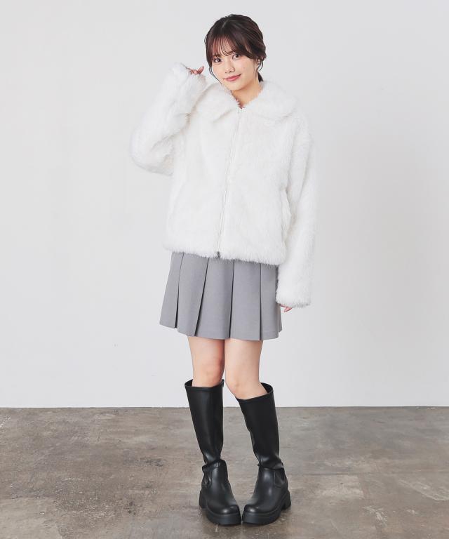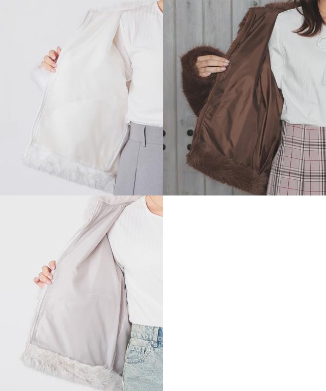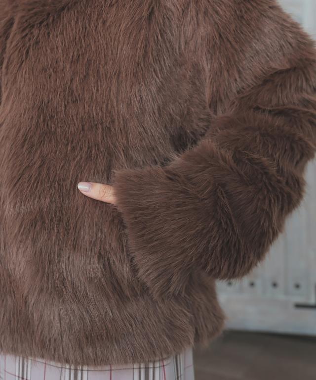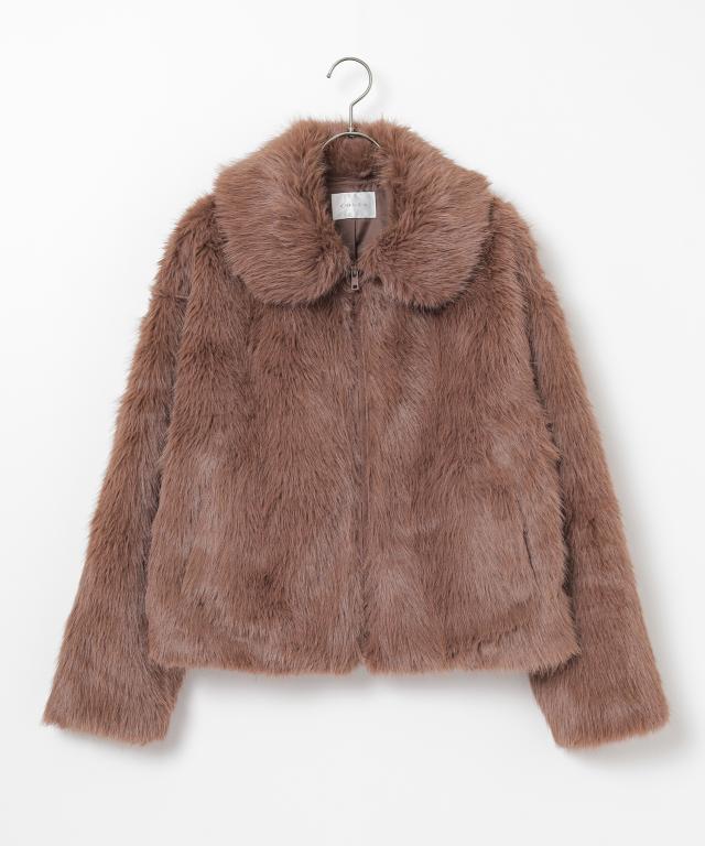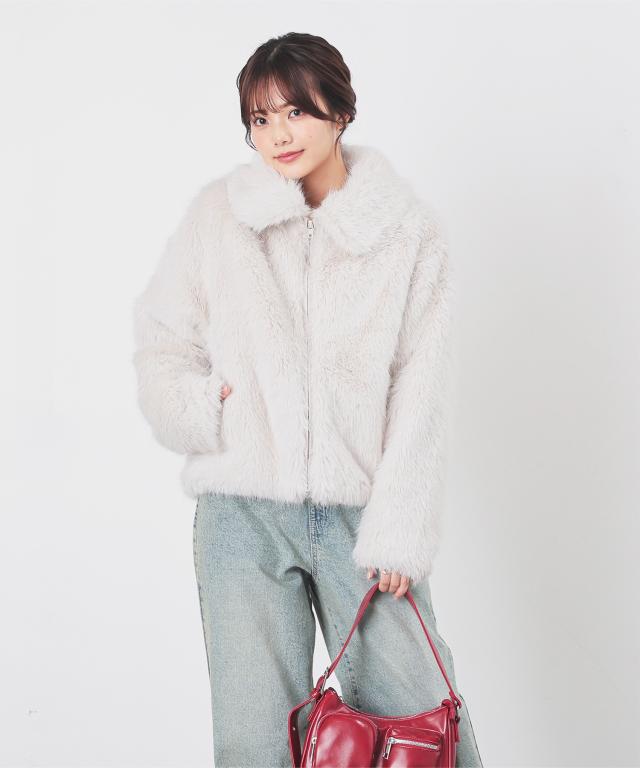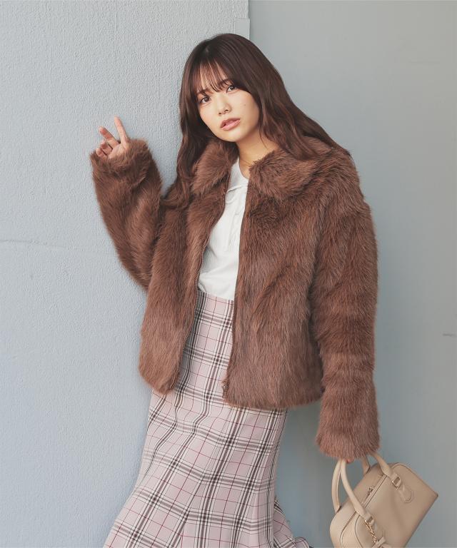 シーズンムードたっぷりなふわもこの、小顔効果も期待できる大きめ衿付きデザイン。