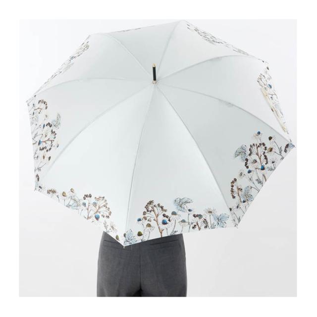 ボタニカルパターンをランダムにプリントしたクールなデザイン雨傘。ゴールドやシルバーのキラキラ箔プリントは甘すぎない華やかさを見せてくれます。JILL STUARTで人気の、高度なテクニックを使ったダブルプリントです。バンブーの持ち手がノスタルジックなアクセントとなり、JILL STUARTらしさを引き立てます。