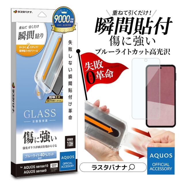 AQUOS sense10 sense9 ガラスフィルム 全面保護 ブルーライトカット 高光沢 傷に強い 貼付革命 貼り付け革命 瞬間貼り 失敗しない瞬間貼り付け レボリューション 0.33mm 硬度10H アクオス センス10 SH-53F SH-M33 センス9 SH-53E SHG14 SH-M29 MTK5176AS10 ラスタバナナ