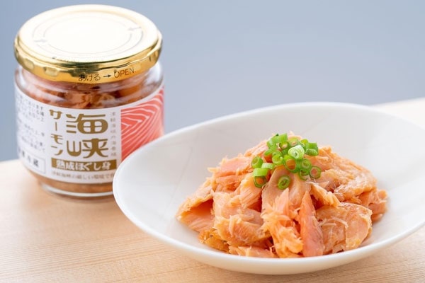 津軽海峡の荒波が育てた極上のサーモンを塩のみで数日間熟成させ、粗めの焼きほぐしにしました。凝縮した旨みを楽しめる自慢の逸品です。