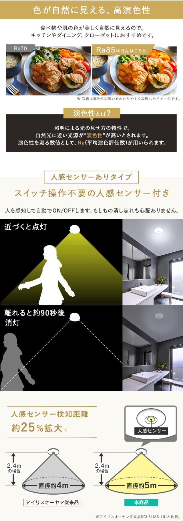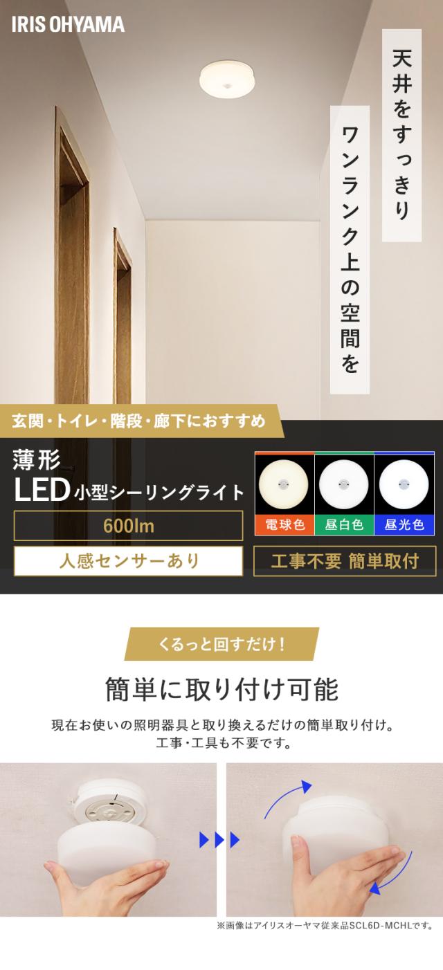 シーリングライト おしゃれ LED 小型 薄型 ledシーリングライト 人感センサー 照明 天井 簡単取付 照明器具 天井照明 電球色 昼白色 昼光色 ledライト 省エネ コンパクト 玄関 アイリスオーヤマ 小型シーリングライト 600lm SCL6L/N/D-MS-U2 *