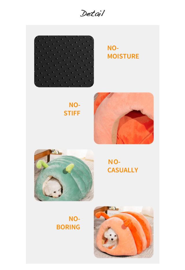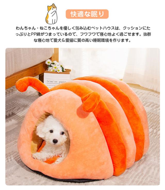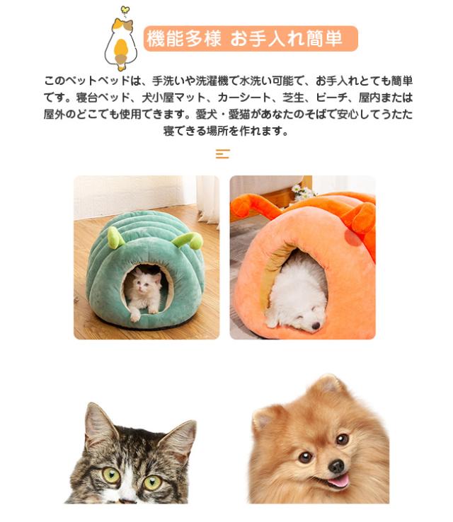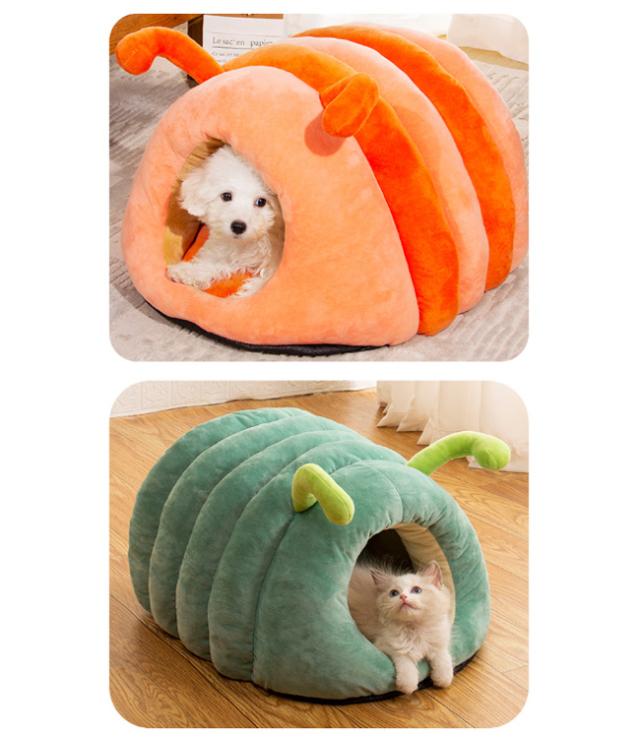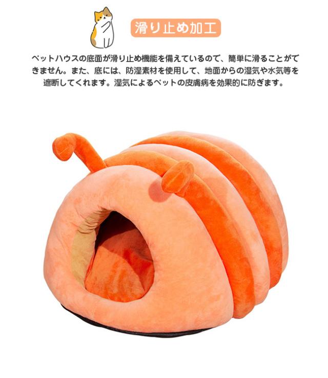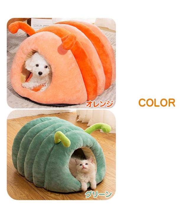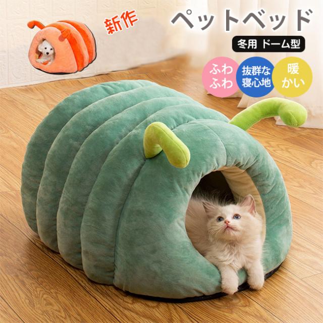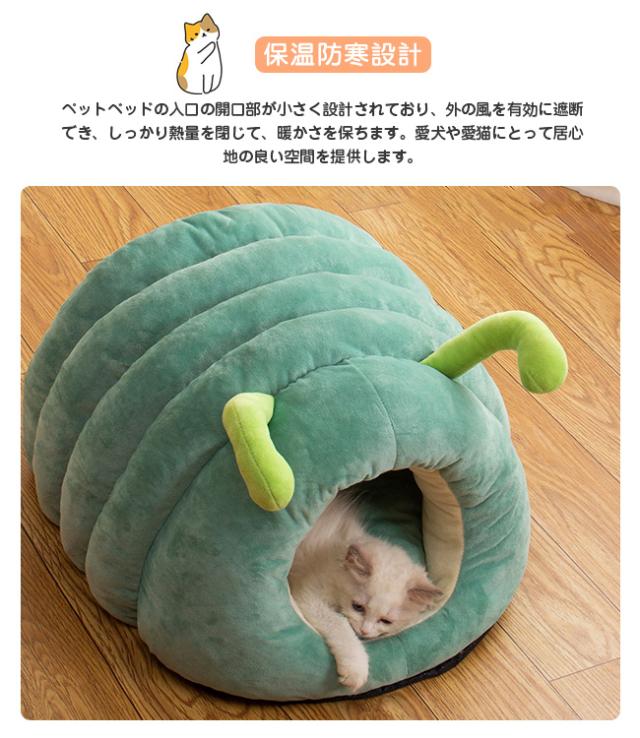ペットベッド 猫ベッド 猫ハウス ドーム型 キャットハウス 洗える ふわふわ 可愛い イモムシ造形 寒さ対策 保温防寒 快適 柔らかい