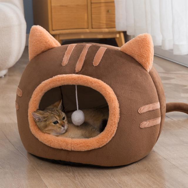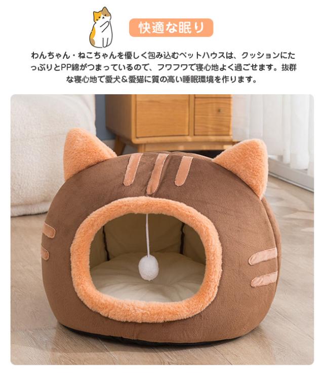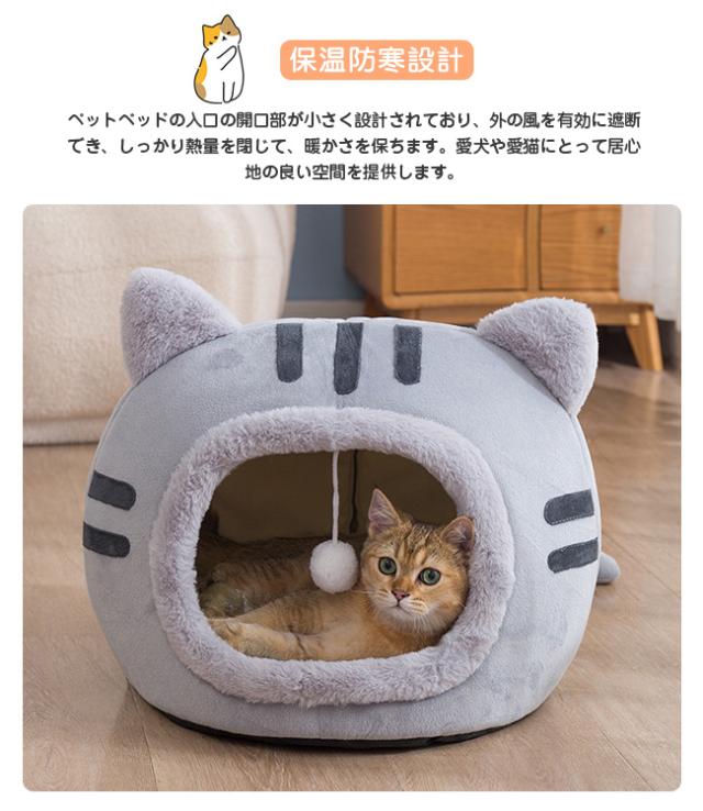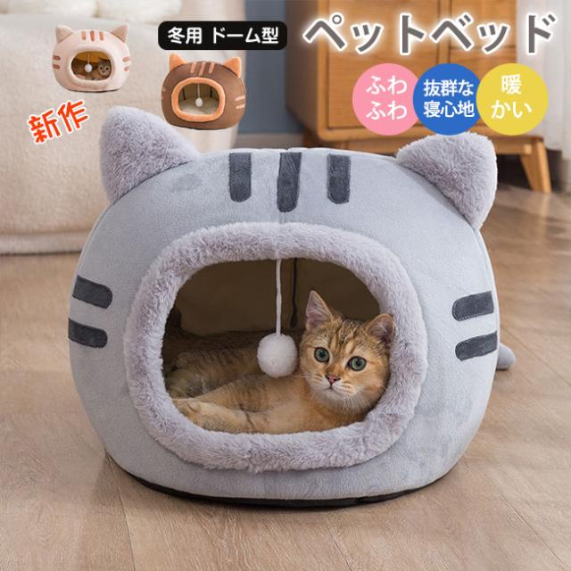 猫 ハウス ベッド ペット用寝袋 ドーム型 キャットハウス 小型犬 猫用 犬猫兼用 暖かい ふわふわ 折りたたみ式寝マット マット クッション 保温防寒 猫犬小動物用 室内用厚み 冬 寒さ対策 可愛い おしゃれ