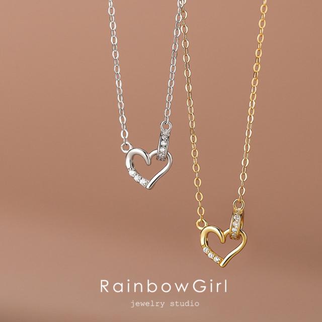 ネックレス レディース ハート 可愛い リング CZダイヤ 三角 プラチナ仕上げ ゴールド 女性 誕生日プレゼント 人気 クリスマス