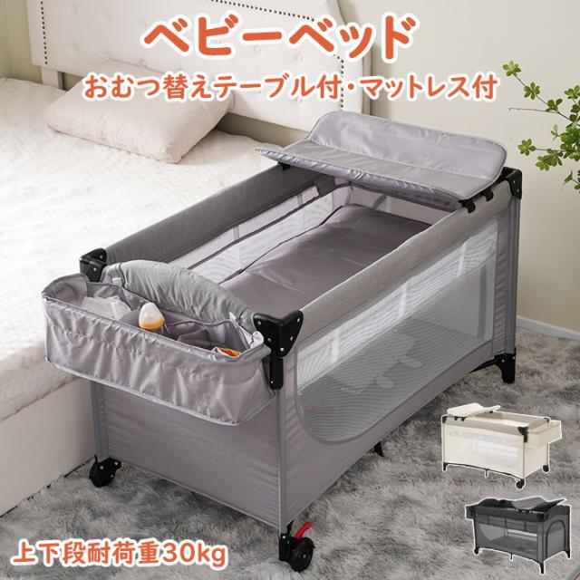 「クーポン配布中」ベビーベッド 折りたたみ ベビーサークル お昼寝ベッド プレイヤード おむつ替えテーブル付 お昼寝マット キャリーバッグ付 マットレス付 キャスター付き 新生児 出産祝い 赤ちゃんベッド お誕生日 お祝い