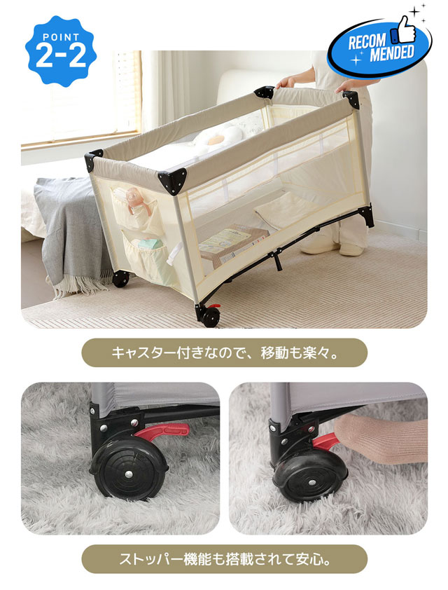本商品はお昼寝用でけでなく、マットレスを下段に取り付けると、ベビーサークルとしてお使い頂けます。通気性と可視性の良いメッシュ素材を採用していて、家事などをしていても外から中の様子が見えて安心です。
