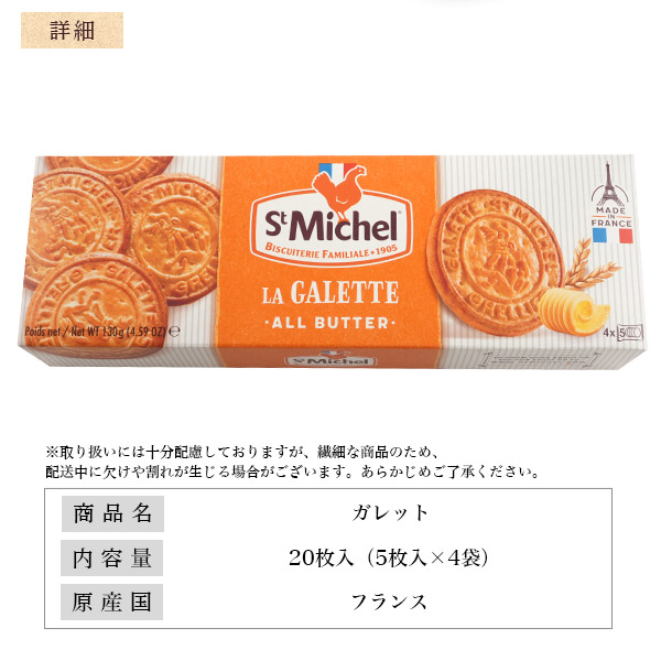 お菓子 サンミッシェル ガレット 20枚入り(5枚入×4袋) 洋菓子 焼き菓子 フランス産 伝統菓子 ビスケット クッキー 保存料 着色料不使用 ハロウィン ばら撒き 自宅用 家庭用 プチギフト プチプレ スイーツ お茶請け