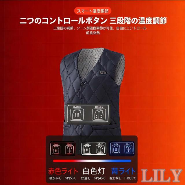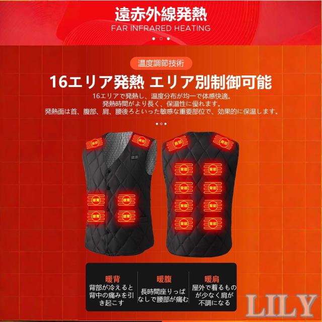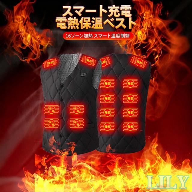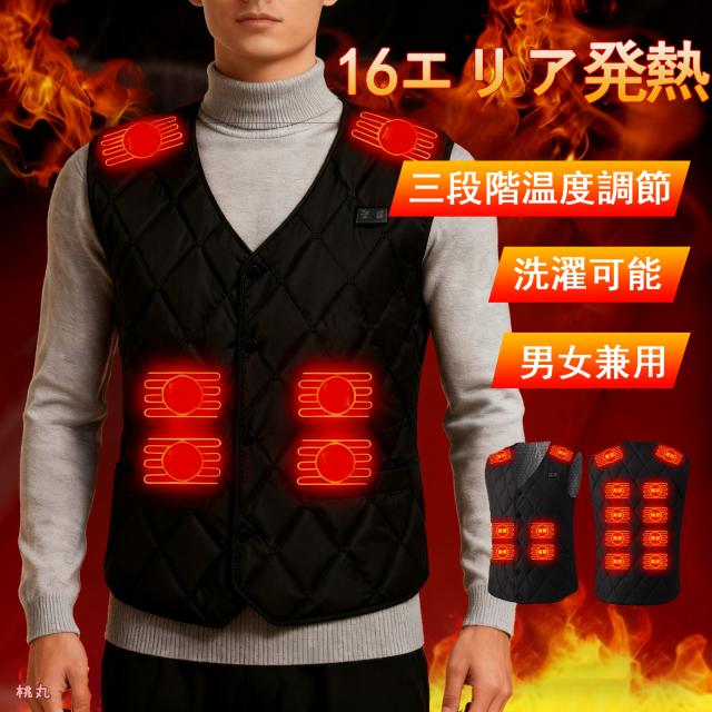 電熱ベスト ヒーターベスト 3段階温度調整 USB給電式 16箇所加熱 電熱 ベスト 中綿 軽い 防寒 15800mAh / 32800mAh バッテリー ヒートジャケット 速暖 電熱ジャケット 電熱ウェア 防寒ベスト 発熱ベスト