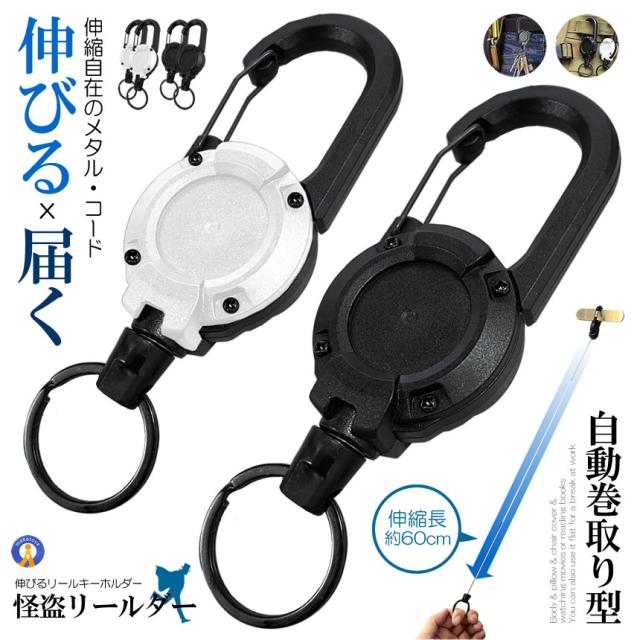 リールキーホルダー 2個セット 伸びる 強力 カラビナ式ピンオンリール キーリール 金属ワイヤー 最長60cm RIRUKEY