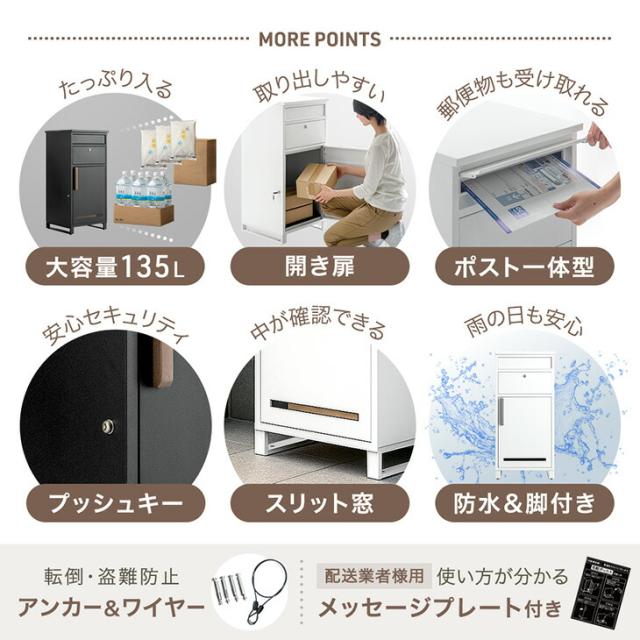 【正午〜P5%還元】 《当店独自》押し込み式 宅配ボックス ポスト 一体型 複数投函 OK 大容量 137L 鍵付き 脚付き 一戸建て用 戸建て 宅配box 置き型 置き配 宅配ポスト 郵便ポスト スタンドポスト プレート 盗難防止 複数 投函 防水 大型 おしゃれ