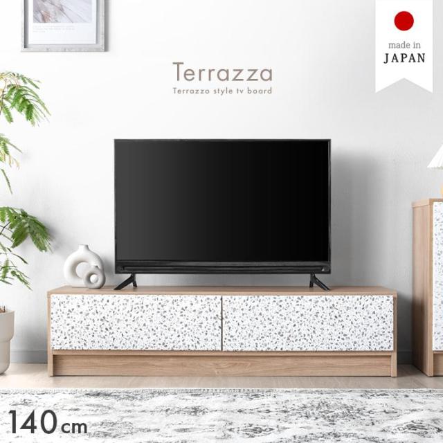 テラゾー柄 国産 テレビ台 Terrafurni -テラファニ- 140cm 完成品 引き出し 収納 ローボード テレビボード テレビラック 石目 ロータイプ 木目調 140センチ 日本製 40インチ 50インチ 55インチ 【超大型】【後払/時間指定NG】
