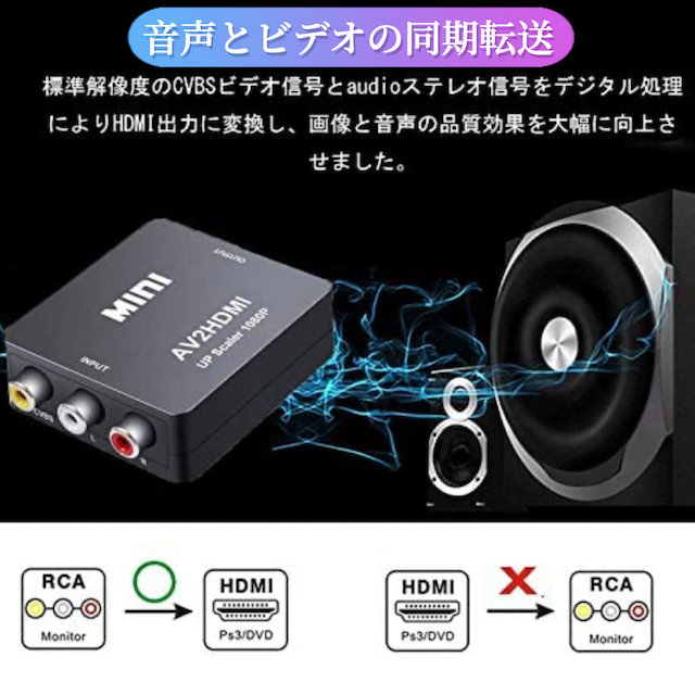 注意事項 | ●本製品はAV入力HDMI出力しかサポートしません、逆方向の変換はできません。 |