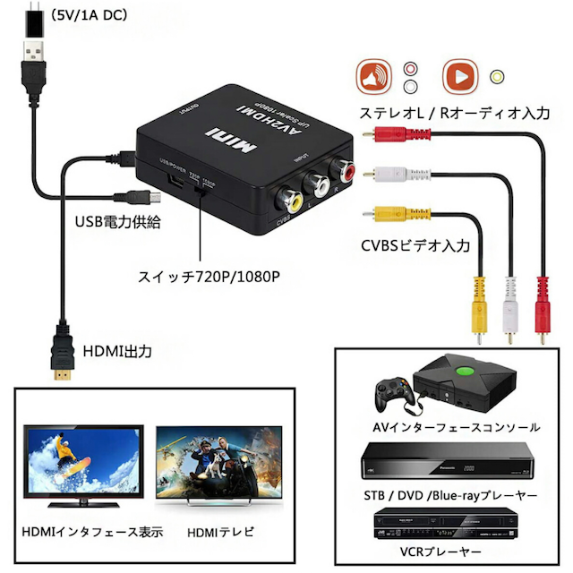 キーワード | RCA to HDMI変換コンバーター AV hdmi コンバーター AV to HDMI 変換器 コンポジットをHDMIに変換アダプタ AV to HDMI 変換器 RCA/AVケーブルからHDMIへの変換アダプター コンポジット端子ーHDMI端子への出力用コンバーター avからhdmiへの変換器 av to HDMI変更アダプター コンポジット/S端子 to HDMI 変換器 1080P対応 Composite 3RCA AV/S-Video to HDMI コンバーター AV to HDMI変換コンバーター ビデオ変換器 コンポジット hdmi 変換 rca hdmi 変換 s端子 hdmi 変換 hdmiコンバーター 音声転送 720/1080P切り替え USB給電 ブラック PS2/PS3 /PS4 /カーナビ/Nintendo switch/TV/DVD player/DVR/VHS/VCR/Blue-Ray TV/STBなど対応 (AV to HDMI変換コンバーター 黒) |