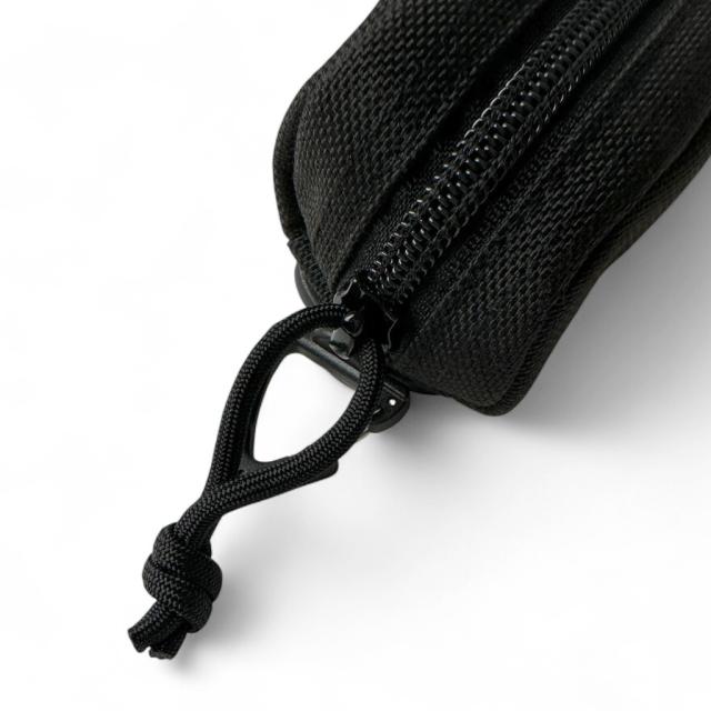 フィールドテストで得たフィードバックを検証し多くのアイテムにアップデートを施すことで、プロユースまで想定した本格的な仕上がりを追及しました。 POINT 01 間口はコードの引き手付きファスナーで、腰に提げたままでも開閉がスムーズです。