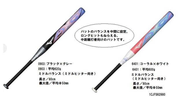 ミズノ ソフトボール用 ソフトボール用 AX4 FRP製 80cm 平均600g、620g ゴムボール用 1、2号用 1CJFS62980