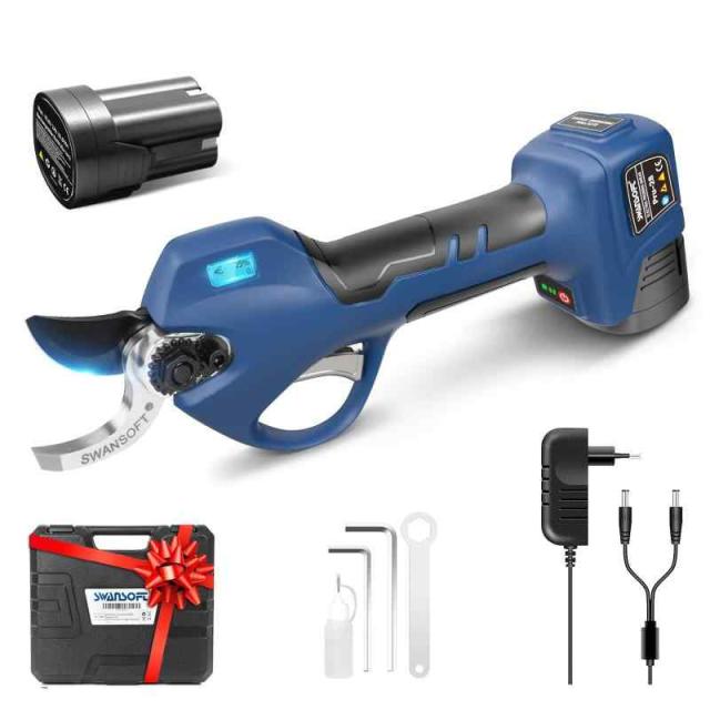 引金連動、軽量 0.9KG Swansoft けが防止機能 28mm 電動剪定バサミ 0.3秒で瞬時切断 コードレス電動はさみ トリガー連動機能付き 16.8V 2Ahリチウム電池2個付き 切断回数と残量表示ディ 2段階開き角度調節可 剪定バサミ 電動 片