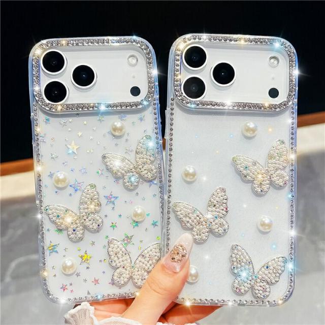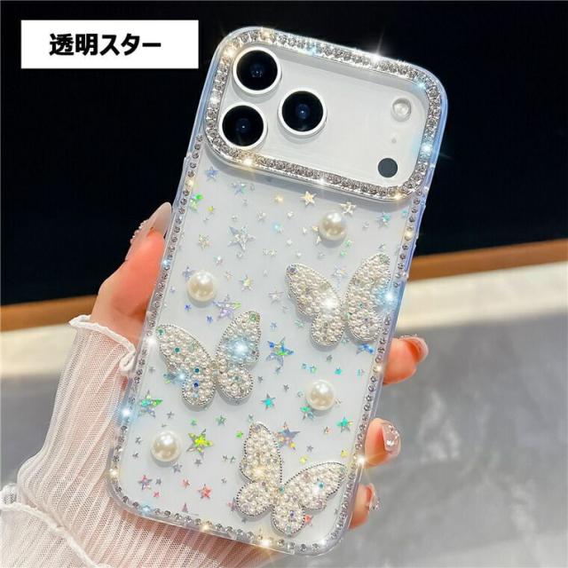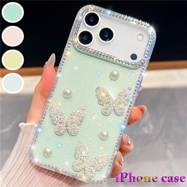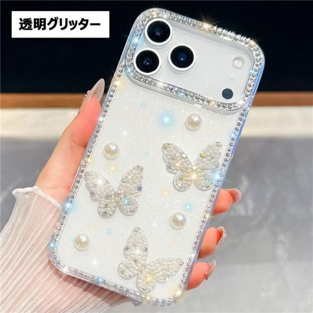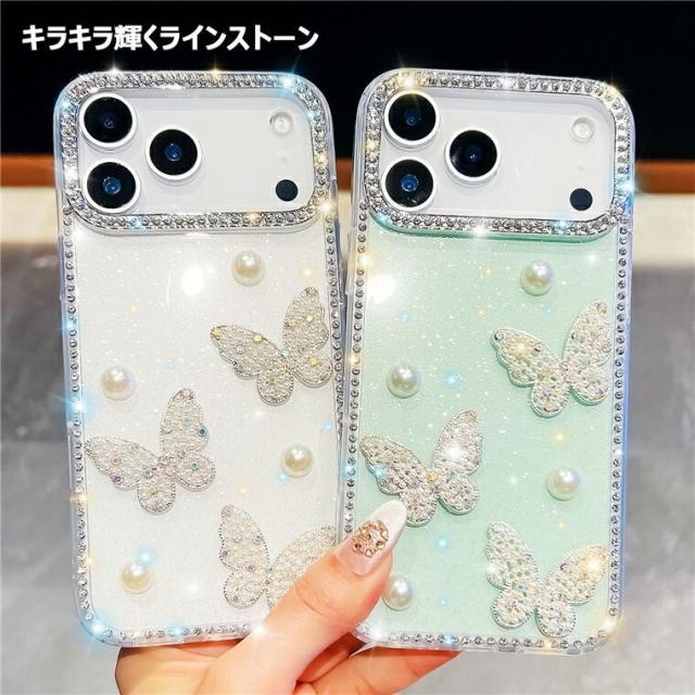iphone17 ケース 蝶柄 真珠 パール 可愛い iphone17pro ケース クリア キラキラ iphone17pro maxケース iphone air ケース スマホケース iphone17 アイフォン17 カバー iphone17プロマックスケース 背面カバー ラインストーン付き 韓国 可愛い 傷防止