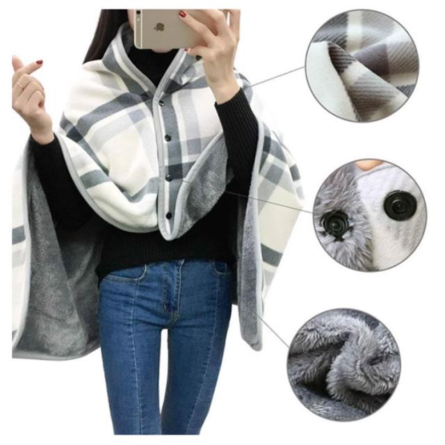 ポンチョ おしゃれ ブランケット ボタン付き ひざ掛け 肩掛け ブランケット 大人 あったか 着る毛布 毛布 ケープ 秋 冬 裏ボア 厚手 ふわふわ スナップボタン 大判 腰巻き 全19色 かわいい 軽い シンプル 暖かい 羽織り 洗える 防寒